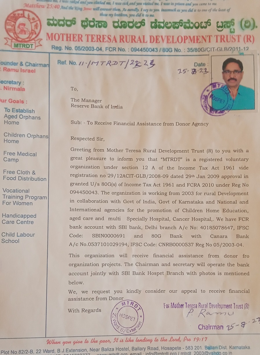 Copy Rights @ Mother Teresa Rural Development Trust